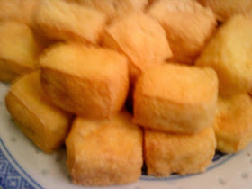 Sau khi đi kiếm khắp thành phố mà không tìm ra chỗ bán đậu hũ chiên phồng thì mình bắt đầu học cách làm đâu hũ, hy vọng sẽ có đậu hũ như ý muốn. Nhưng làm đủ cách, dùng đủ loại coagulator mà đậu hũ của mình cũng chỉ giống như đậu hũ bán ngoài chợ, chiên cũng không phồng.