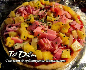 Sẵn có Cooked Ham và Pineapple nên Tứ Diễm đem dùng làm topping cho món Pizza Ham Pineapple