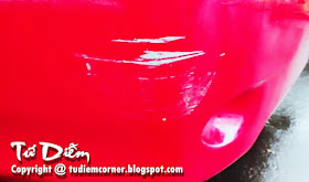 Nói nào ngay từ khi bắt đầu lái xe đến giờ, Tứ Diễm cũng đã vài lần bị thiên hạ ủi trúng xe, tuy nhiên đó là những chiếc xe khác, không phải chiếc xe này. Chiếc xe này từ khi bắt đầu lái đến giờ mới bị xe khác de đuôi ủi trầy đuôi xe như vầy nè.